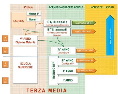 Rappresentazione Grafica del sistema di Istruzione e Formazione Professionale e dei collegamenti/passerelle possibili con il mondo della Scuola e il mondo del lavoro.